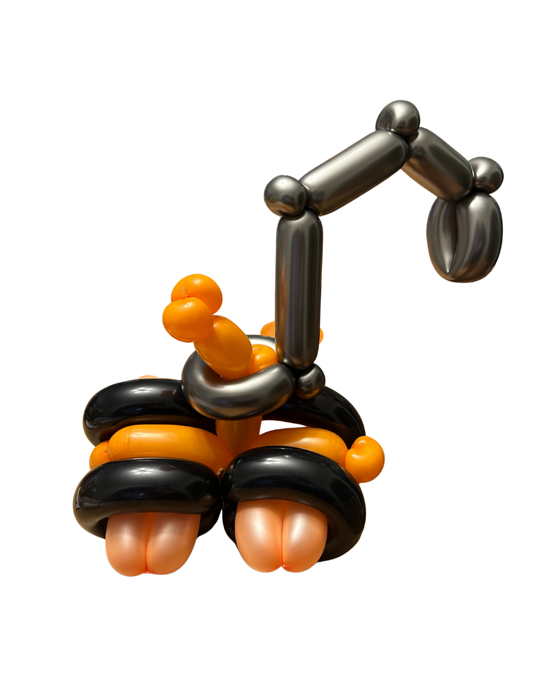 Balloon sculpture of Sesame Street's Elmo holding a white heart-shaped balloon with the word 'Plums' written on it.
